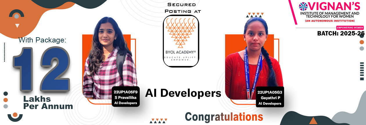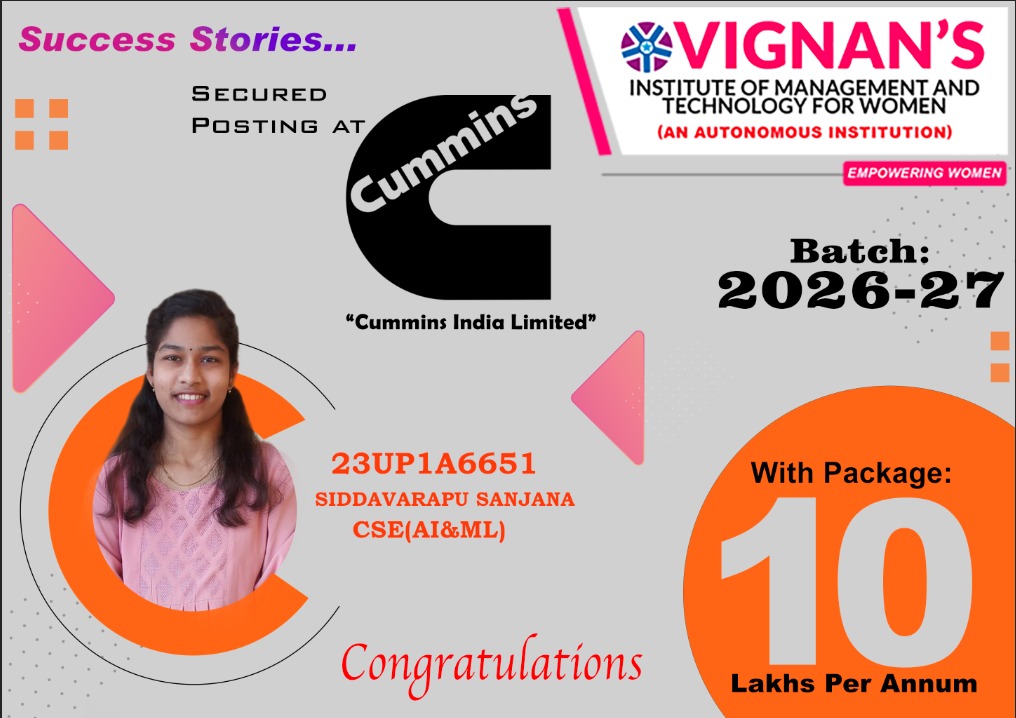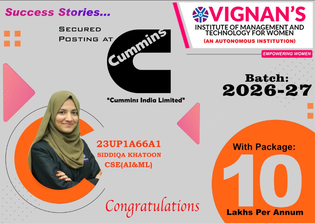 Vignan approaches best education and excellence in Technology and science with a modern outlook. Academic excellence, our prospectus gives undergraduatesanawareness of the real world; with inspiring, ground-breaking entrepreneurial learnings. Industry Relevance CorporateExposure Freedom of thoughts & Expression Exclusively courseisoffered with number one facilitates.Apply application of theoretical concepts to real world challenges. Inter-Disciplinary learning ensures that our students gain information and perception over various subjects. VMTW stand for honesty and integrity with innovative curriculum, values and ethics, most picturesque and oxy-rich campuses.