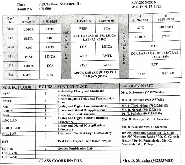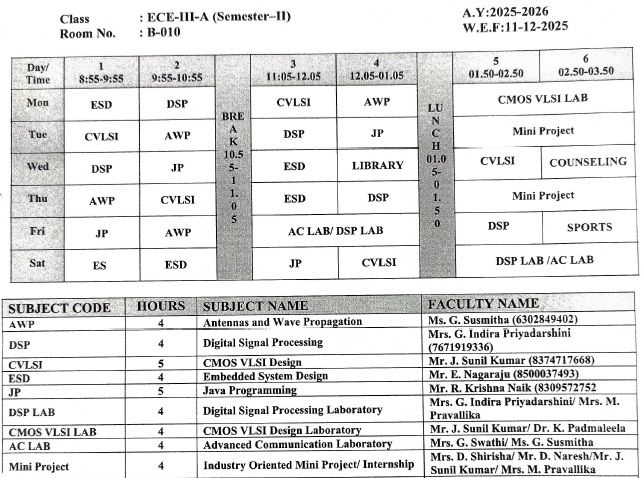 Time Table A.Y. 2025-26